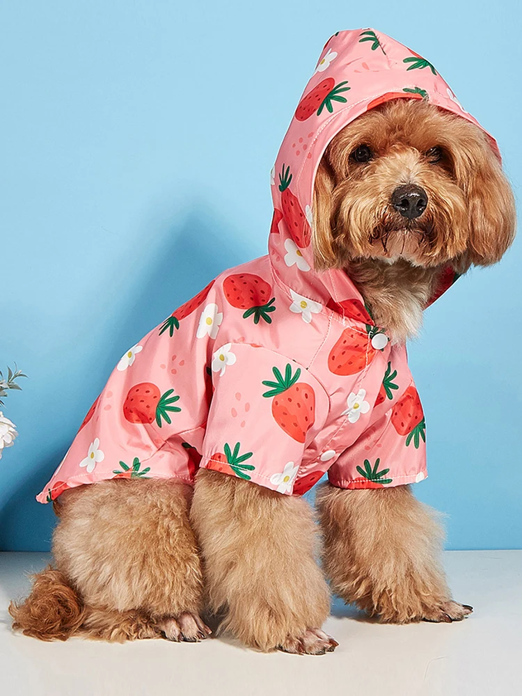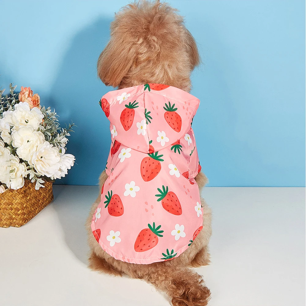De aardbeien stijl honden regenjas is dé regenjas voor honden die graag gezien worden. Het opvallende design met vrolijke aardbeienprint maakt elke wandeling een feestje, zelfs in de regen! Niet alleen is het een unieke keuze qua stijl, maar het ontwerp zorgt ervoor dat jouw hond er schattig uitziet, terwijl hij beschermd blijft tegen de regen. Dankzij de levendige kleuren valt jouw hond ook nog eens goed op, wat zorgt voor extra veiligheid tijdens grauwe dagen.