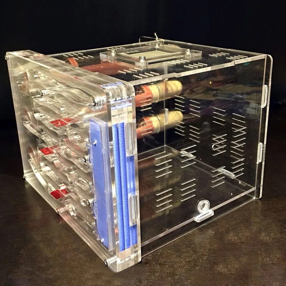 De mierenboerderij is voorzien van een transparant observatiepaneel, waardoor je een helder zicht hebt op het doen en laten van de mieren in hun nest. Je kunt getuige zijn van hun dagelijkse bezigheden, voedselzoektochten en de manier waarop ze met elkaar communiceren.