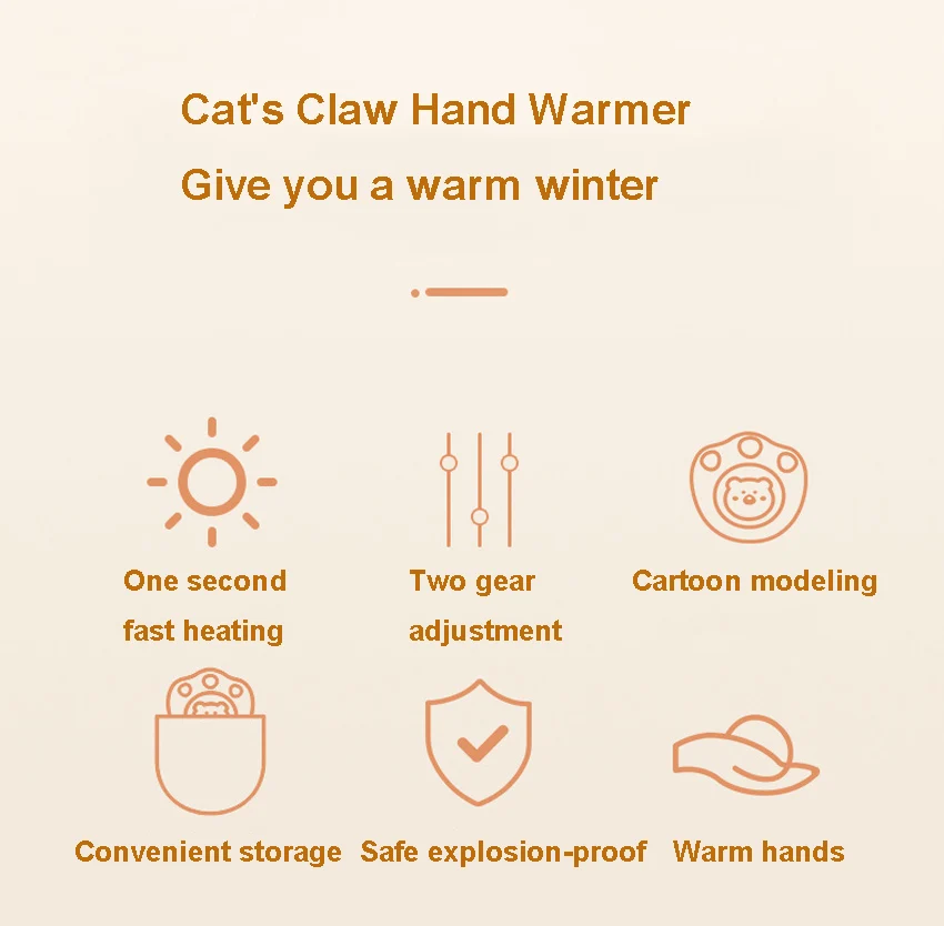 Onze handwarmer is niet zomaar een warmtebron; het is een schattige metgezel in de vorm van een kat. Of je nu naar je werk gaat of een wandeling maakt, deze handwarmer brengt een glimlach op je gezicht.